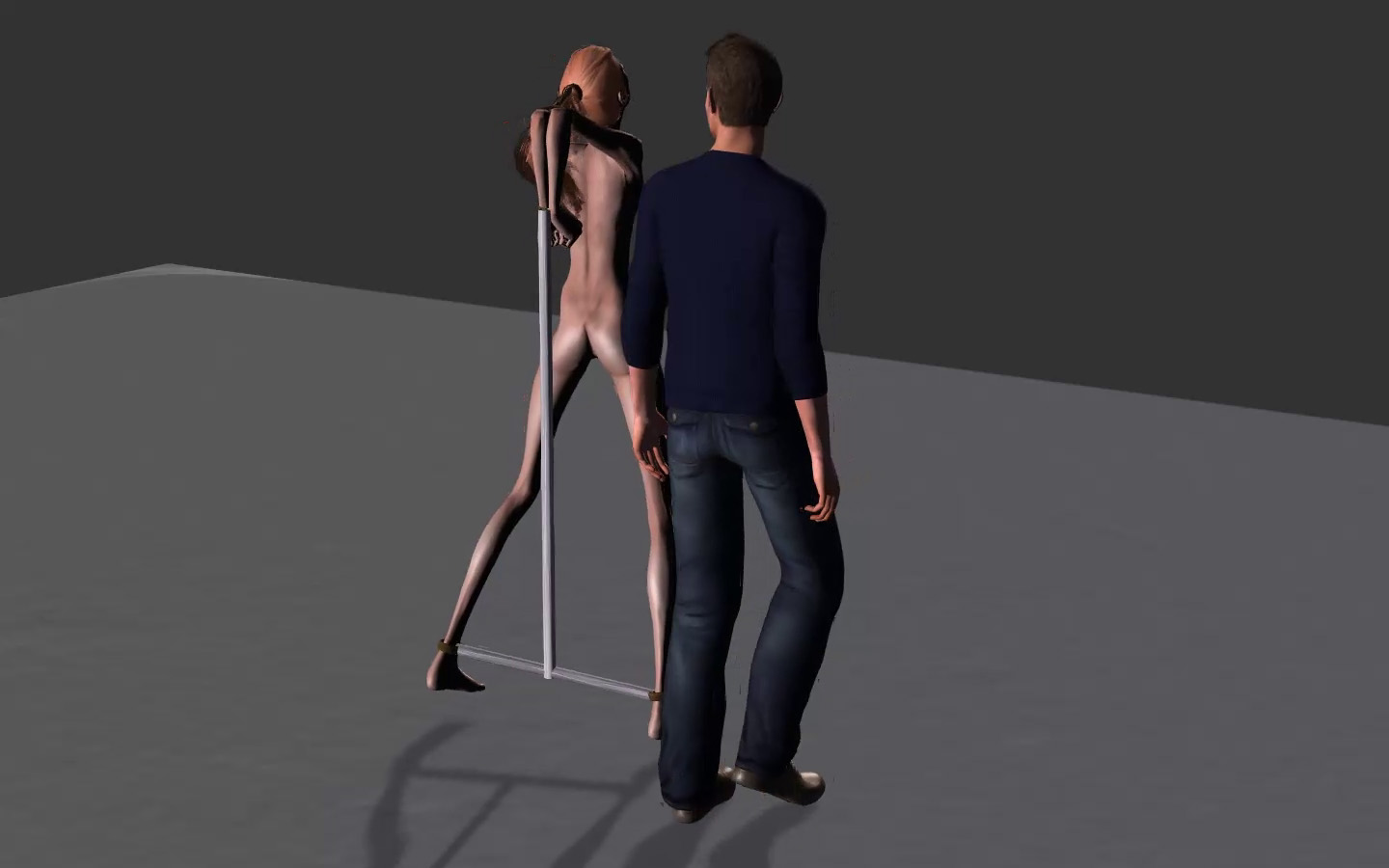 Surprise! You see if I grab the pole you stop instantly. How are you feeling? Not too good I guess. I think we'll walk you for an 3 hours... with frequent stops. I won't get as tired as you. There will be someone else with you every 15 minutes, and the others might bring a cane to whip you up to speed.