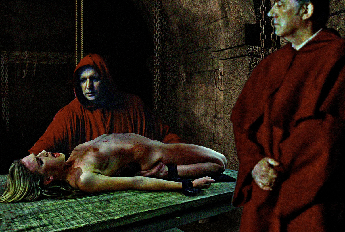 Here's three versions of her as I would want her to have a role in. A Hostel scene and two Inquisition interrogations. Thanks to KINK and yyy, who posted her pics.