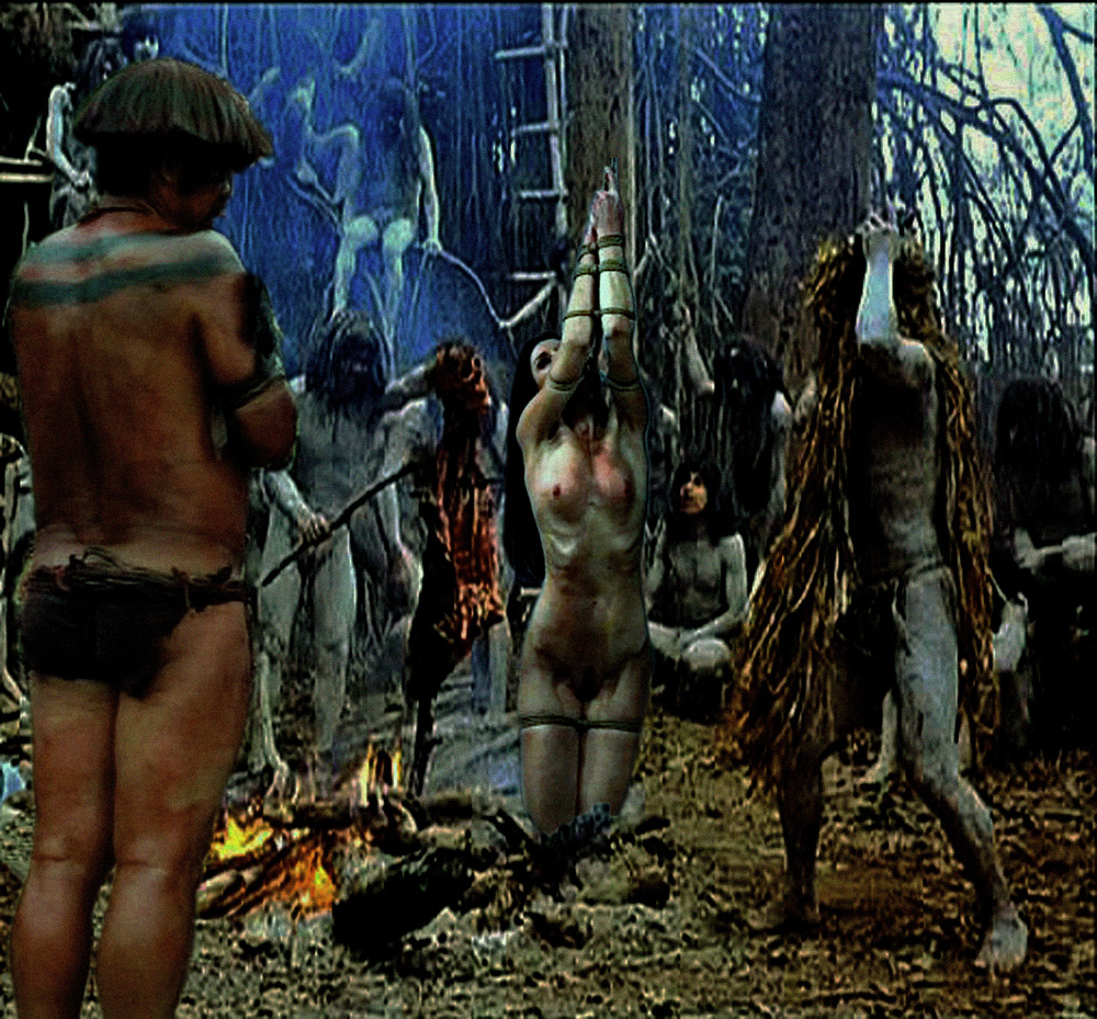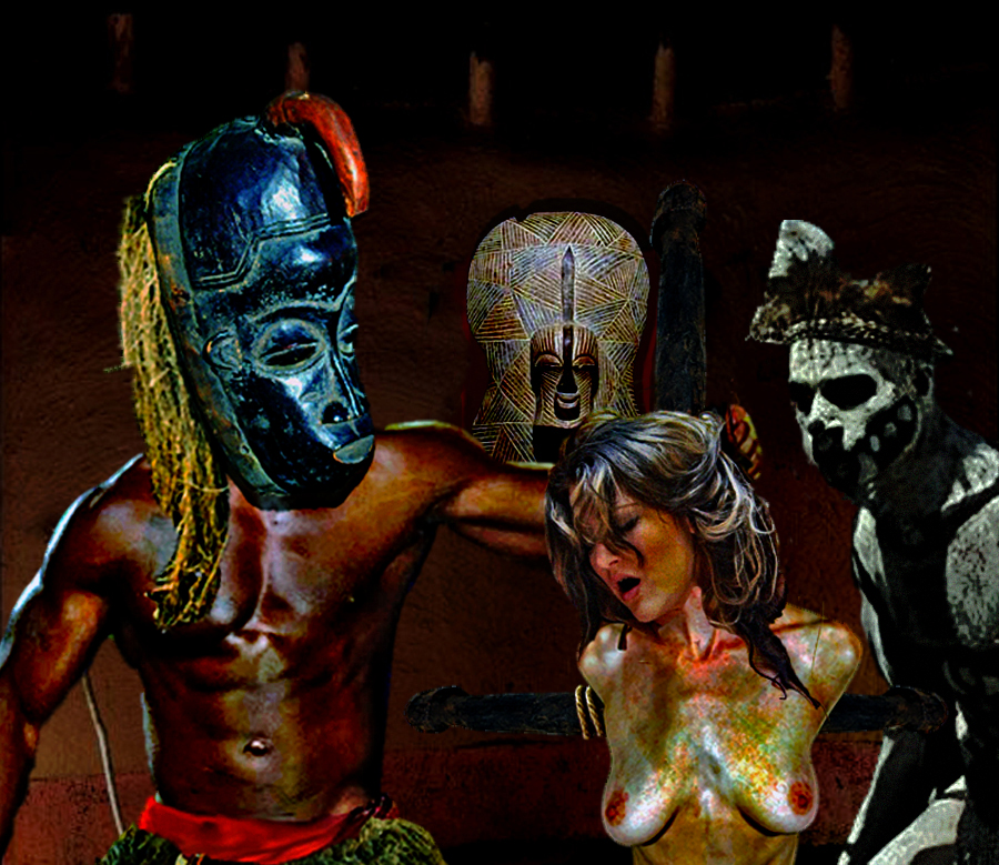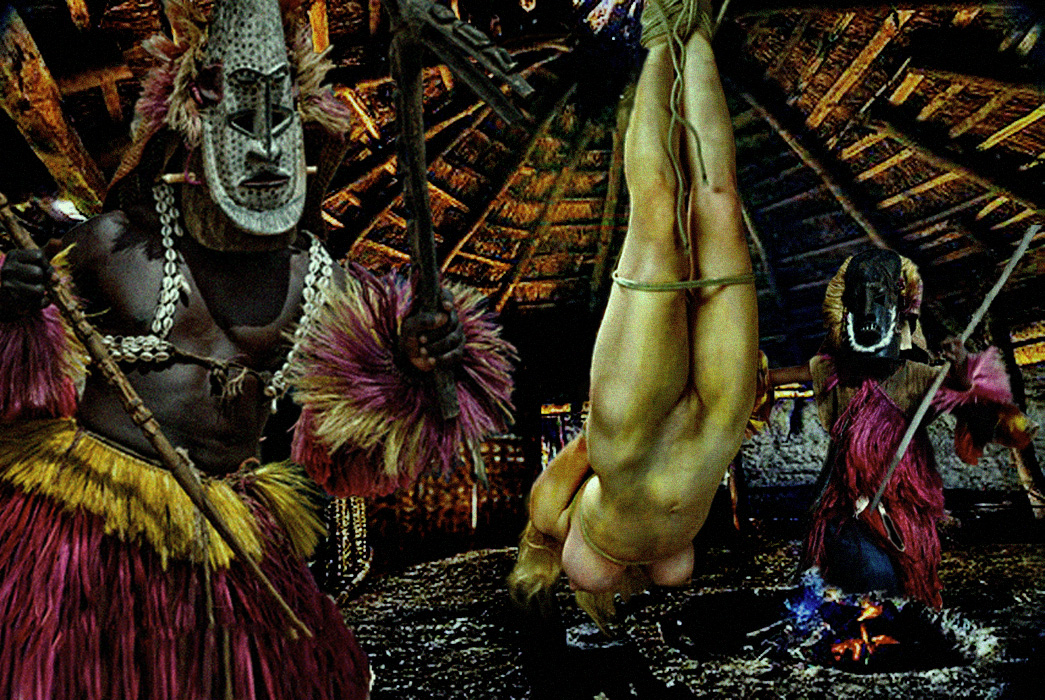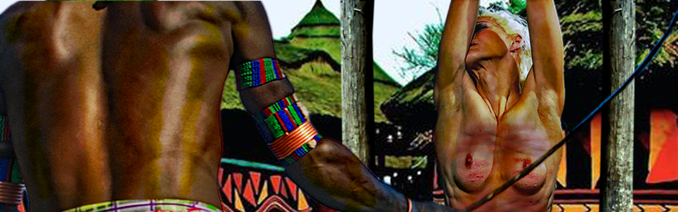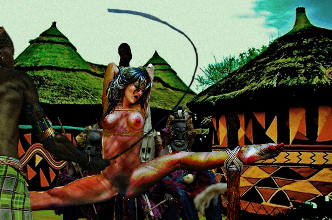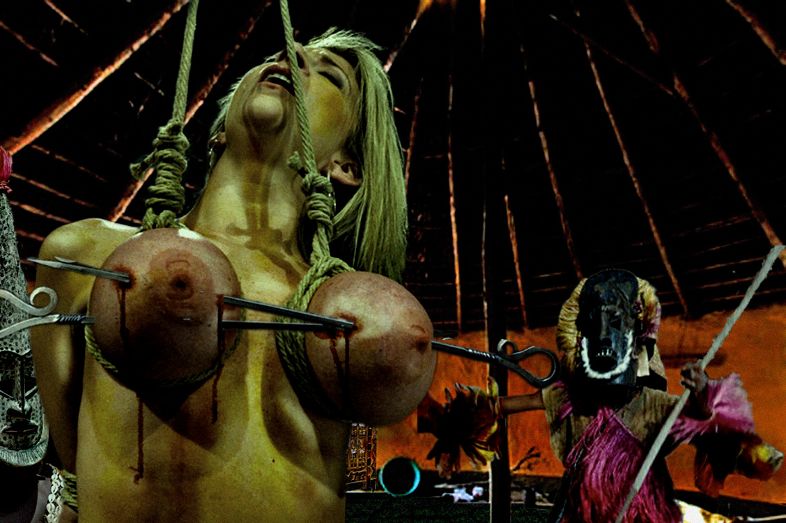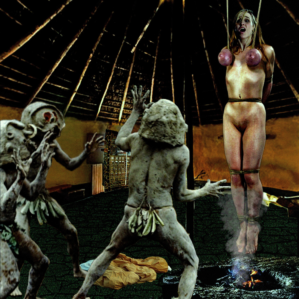 The captive is taken into the ritual-torture hut. She has been previously stripped and smeared with the sacred yellow pigment. The stagnant air in the hut smells of sweat and burnt pinti leaves. She is bathed in the perspiration of fear as she is pushed forward into the main ritual hut. Her torments will be accompanied by intermittent sexual humiliation. . .[/size]