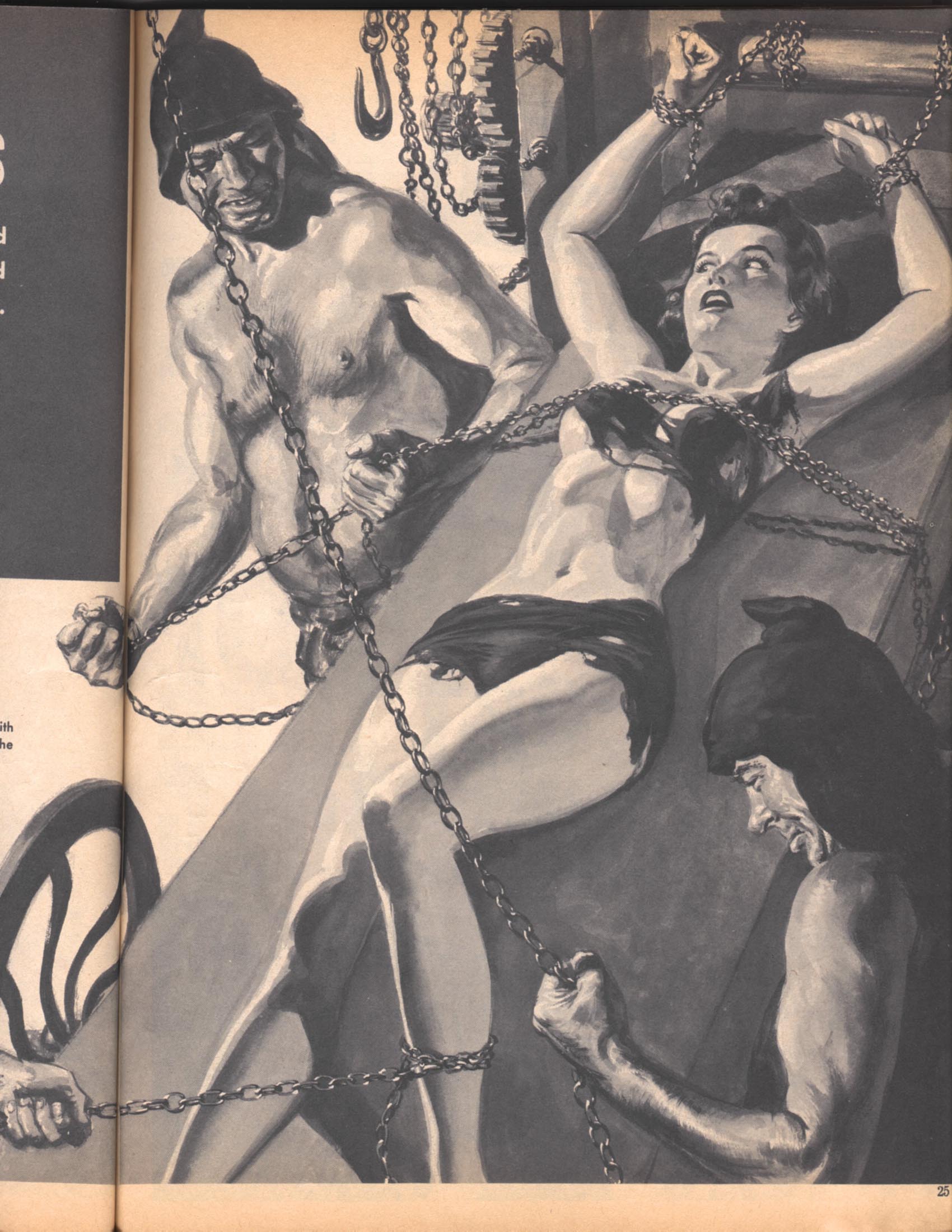 Interior scan from Man's Book 1964-12. I was wondering if my AI software could handle the interior drawings in grayscale. The answer is that they do - sort of. The resolution of most interior stories isn't that great, but it's okay.