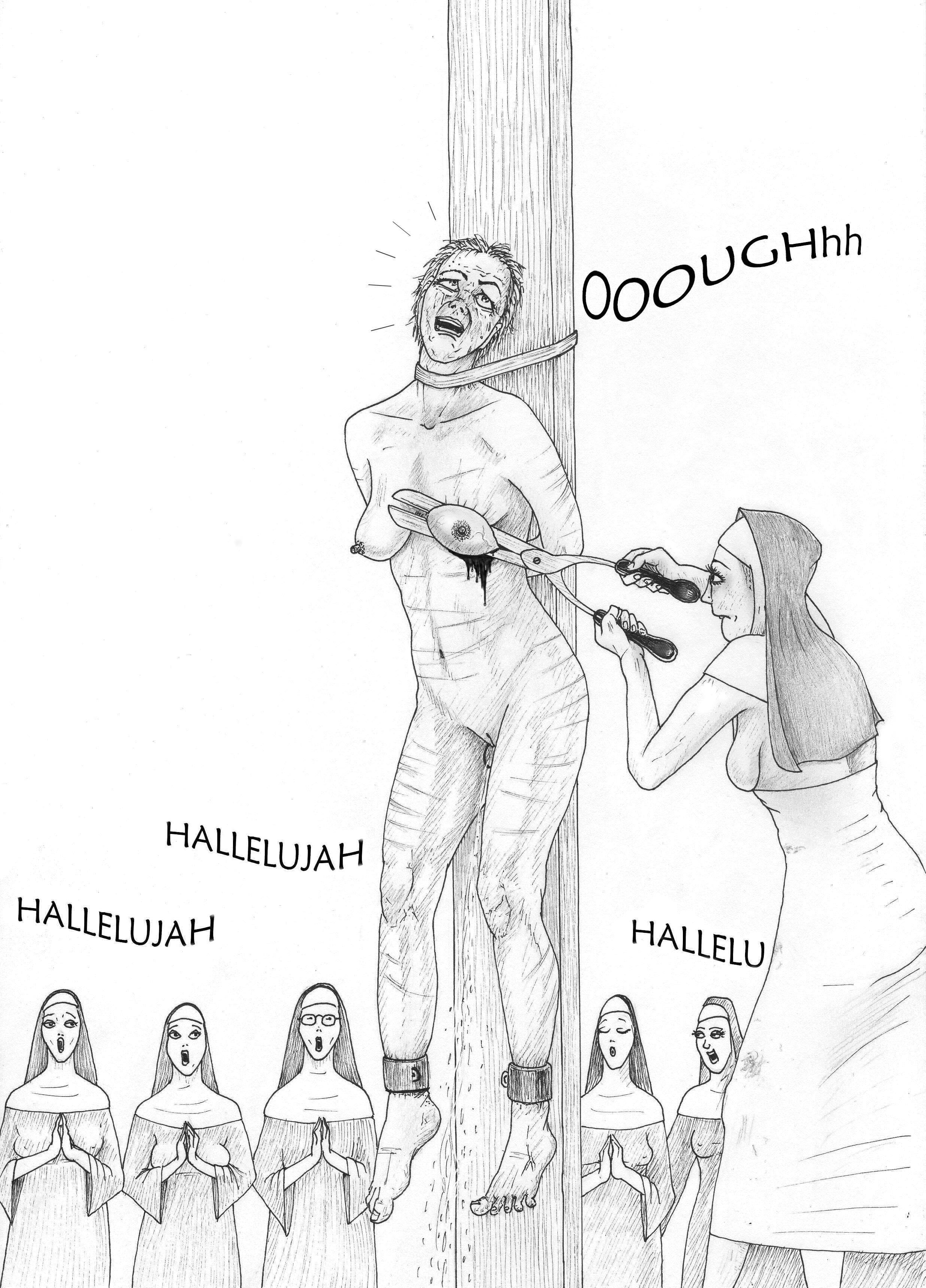 It's a shame, what a rush, Sister Frank could have been more creative with the previous Mother Superior's breasts... poking at the unused milk glands with red-hot needles, slowly peeling off the skin and rubbing the raw flesh with brine, crushing the nipples with hot tongs...
