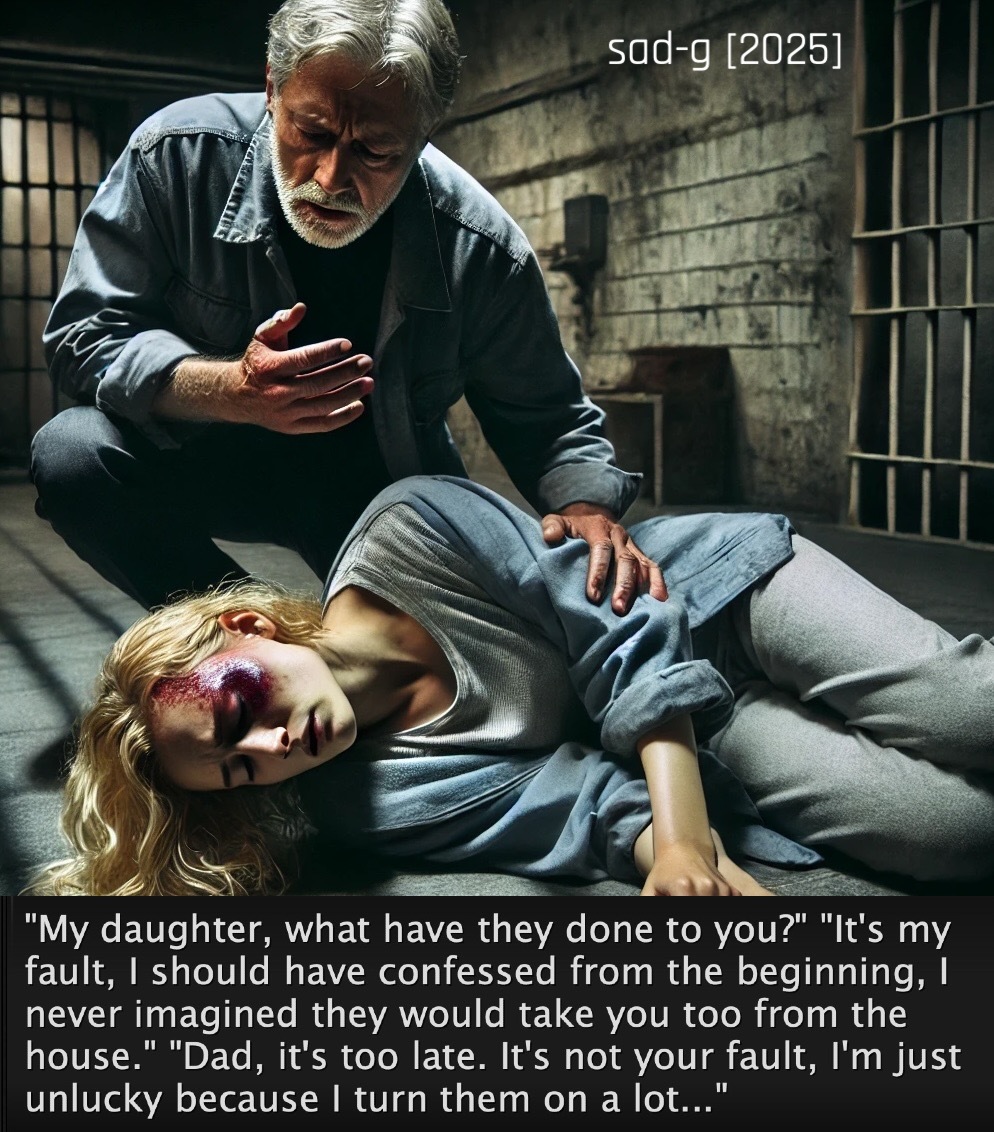 After the introduction, in the next few episodes of the interjected "family" storyline within the main novel "Carolina L.'s Ordeal", there won’t be as many tormentors as in Carolina’s case. There will be only one—the father—who will savagely torture his wife and daughter, either separately or together, through various brutal methods, because they told him, "If you don’t do it, we will, and far worse." Eventually, he will start to enjoy it—very much, like a pure sadist. Carolina will take a break for a few days. She has been tortured enough and needs to regain her strength in solitary.