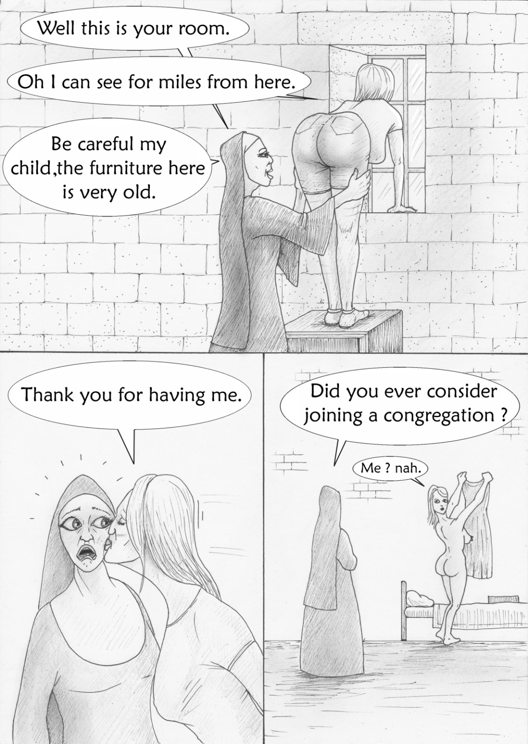 The good Nun is clearly eyeing our girl's cute butt....and that's a good sign.