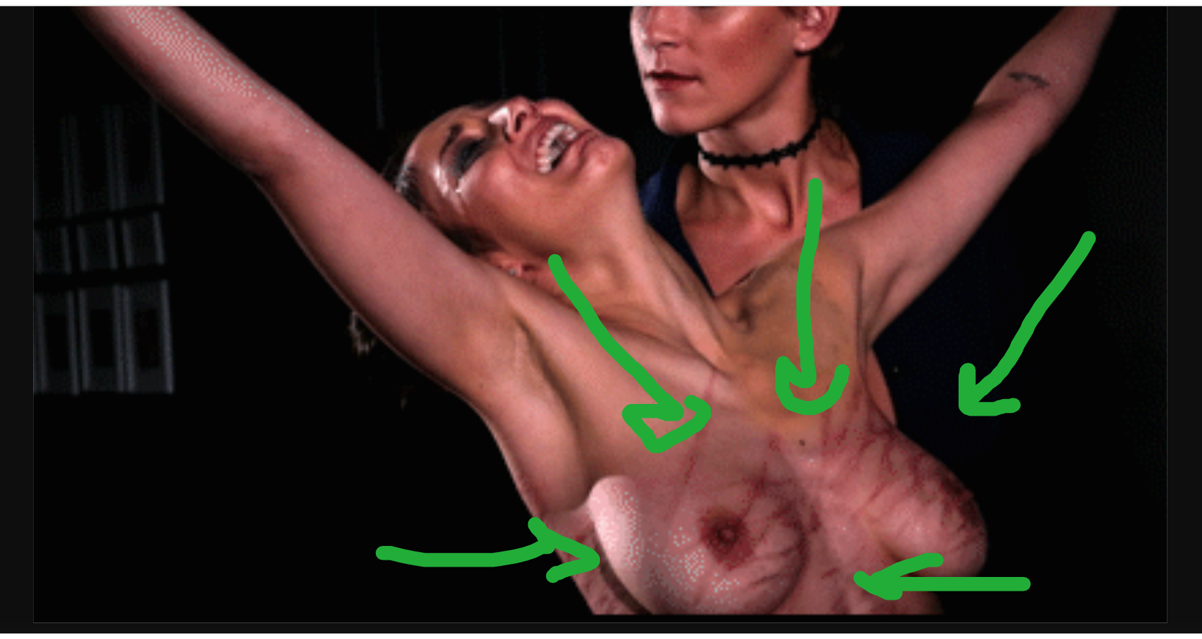 About mistery......mhhh.....looking carefully the gif , when Goddess Amanda grips the Darcia's hair , the breast are actually marked everywhere up, under, side part....... a fucking good job.