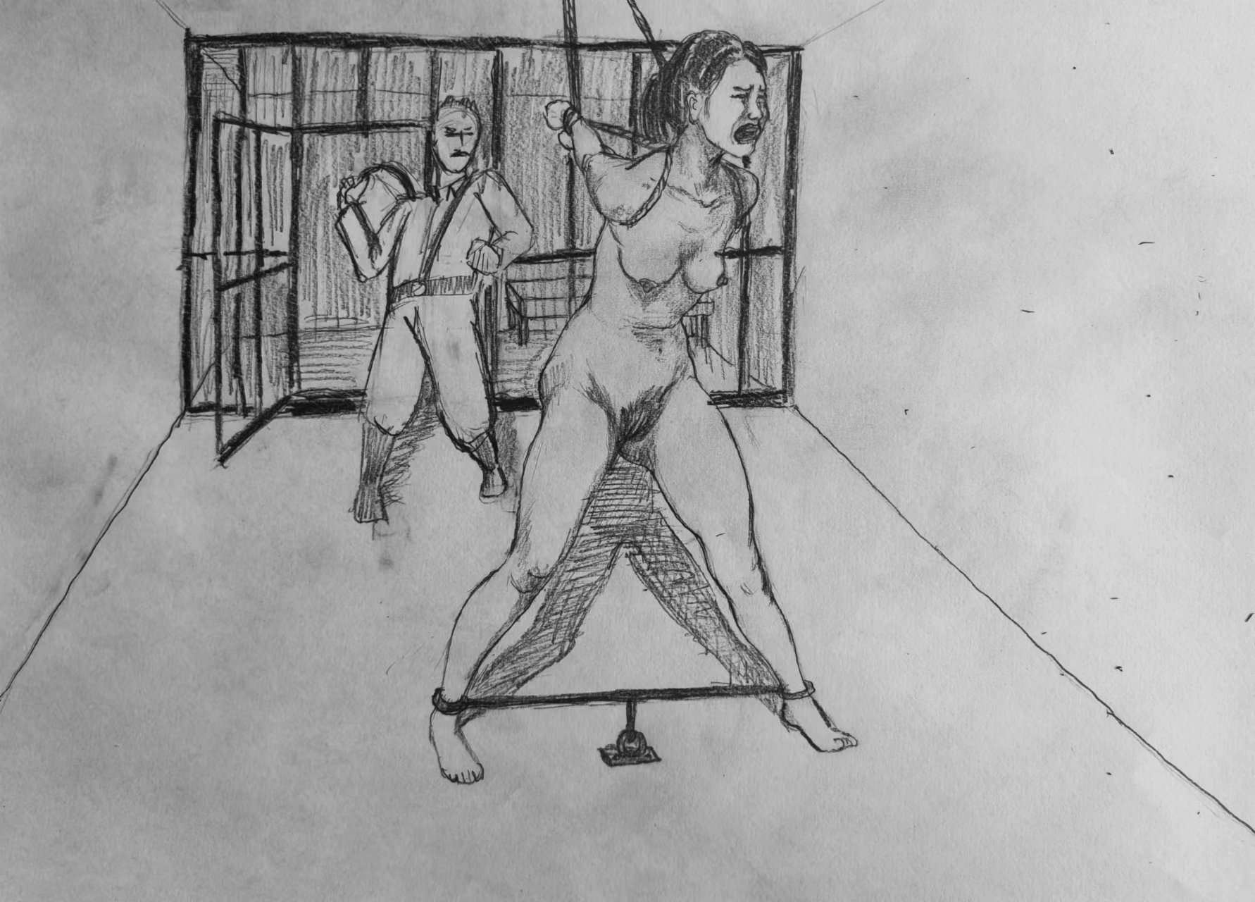 I think that would be a difficult position to draw, but you definitely did a great job with it. The usual very apropriate facial expression and lovely whip marks are icing on a very nice cake. Another very sexy image to add to your collection.