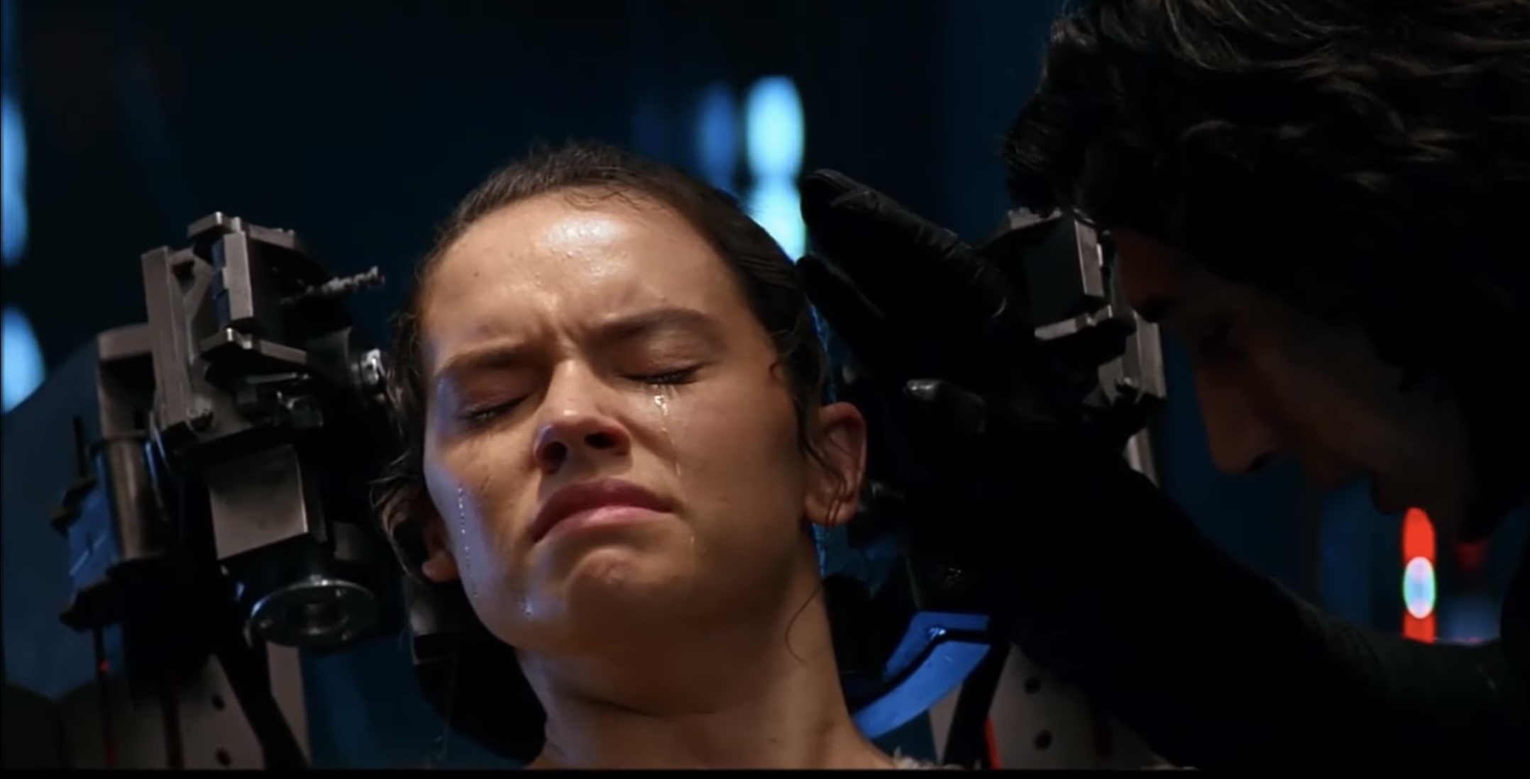 Her expression says: “You wouldn’t actually use those electrical clamps on me would you?!”