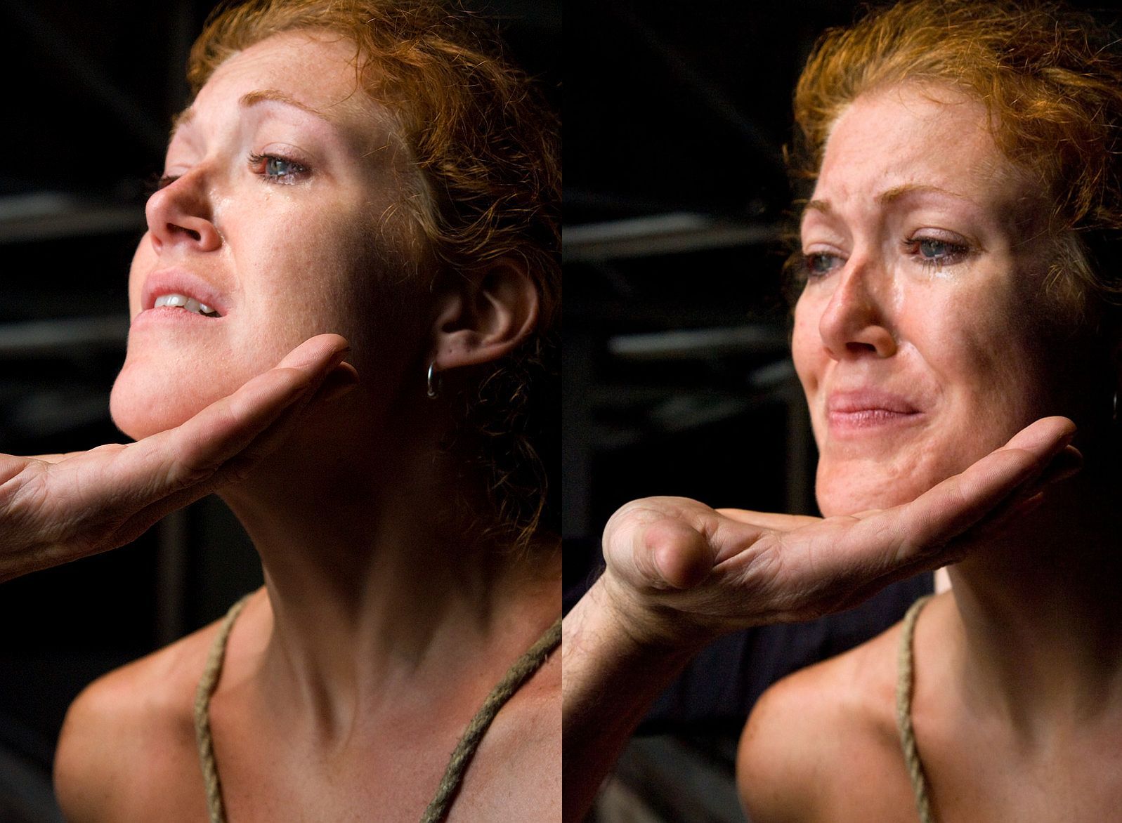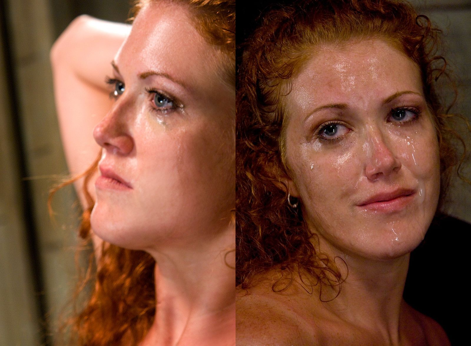 This redhead gimp has a complete range of interesting facial expressions, from defiant to submissive and fearful...