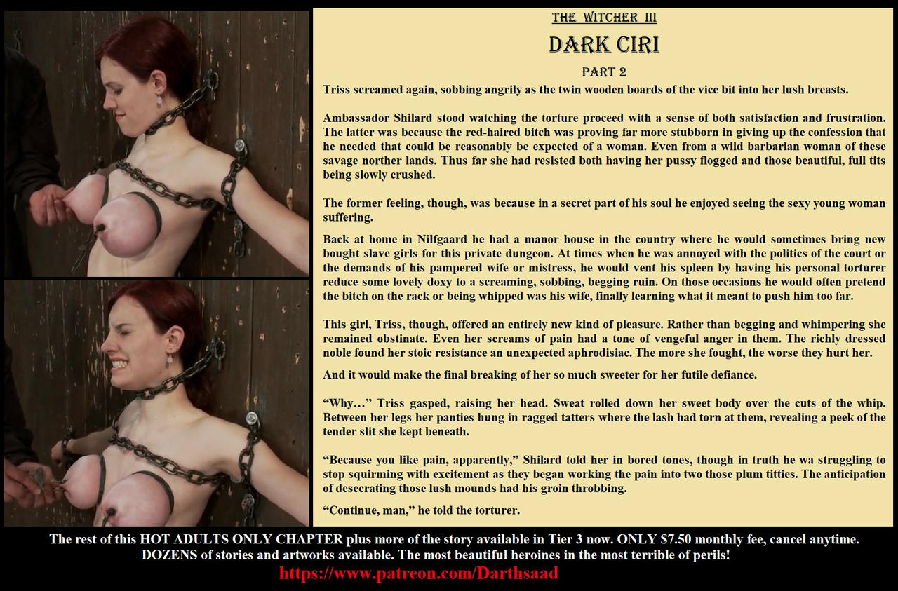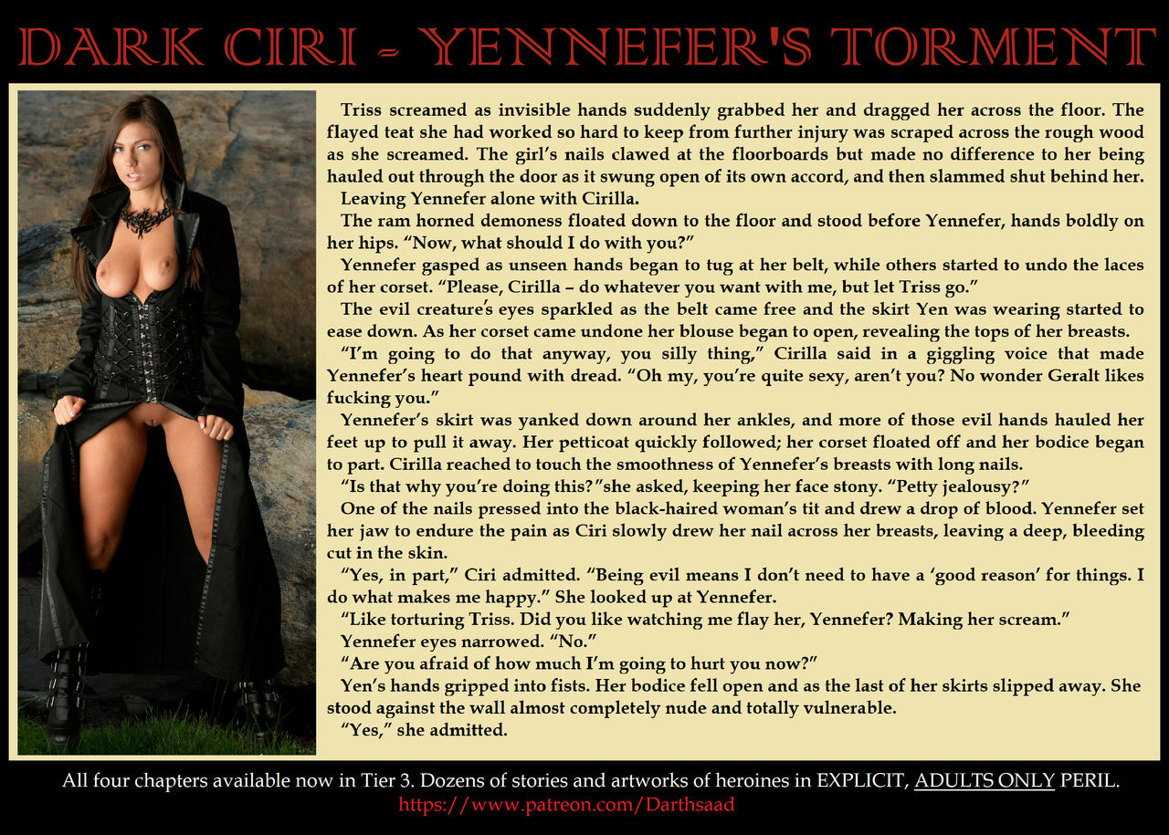 Lured into a trap by the pain of her friend Triss Merigold, the beautiful sorceress is made to suffer AGONIZING SEXUAL TORTURE.