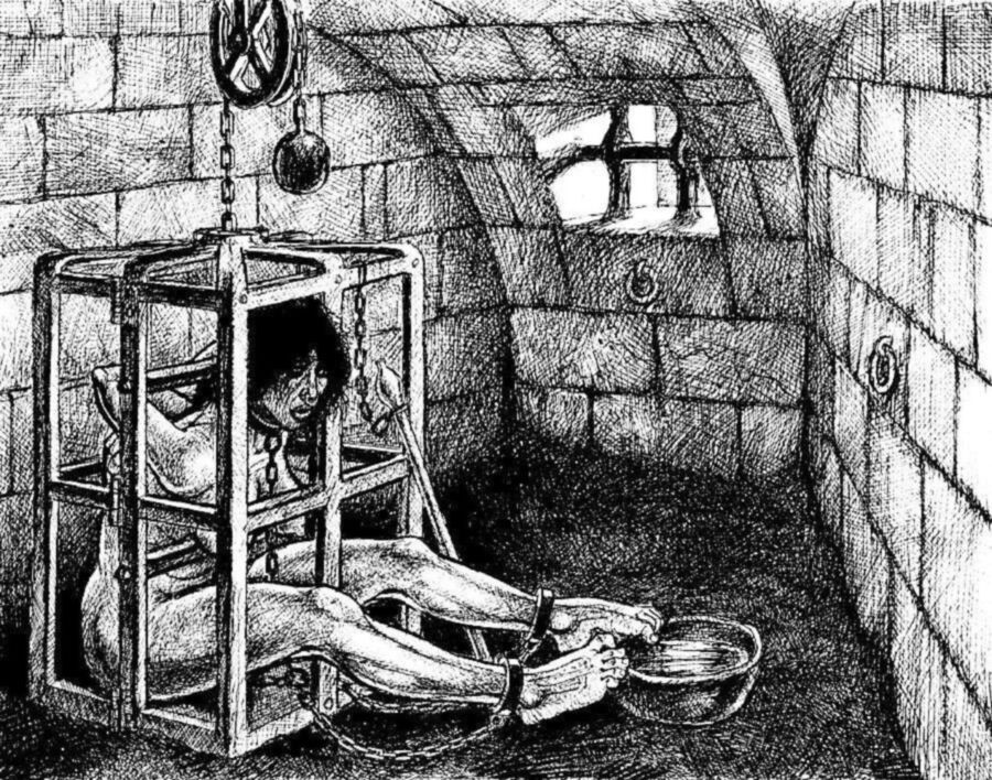 There is a cell to which Katie has been taken. Stretched and spread on the table there, she is whipped, has a soldering iron inserted into her pussy and then is raped. How evil can you get?