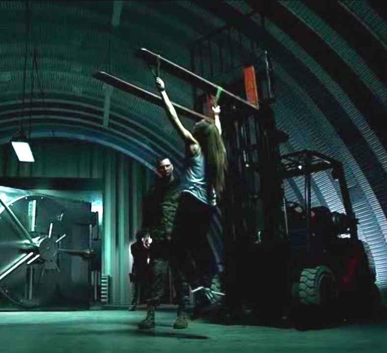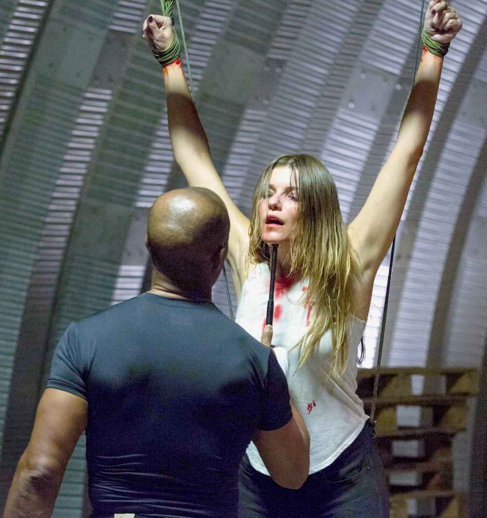 Ivana Miličević as Carrie Hopewell is beaten with a baton.