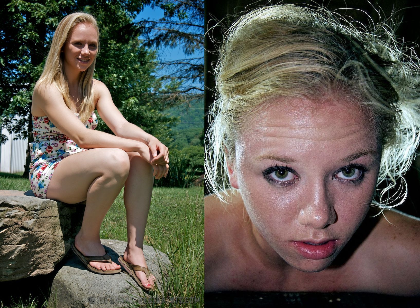 Ha ha, I just had this flash of this teen teaser (#1left) slowly strolling the aisles of the local Walmart, "shopping". But in reality it's just to give the guys a good look at all that smooth exposed flesh. Ahhh girls in their summer dresses.