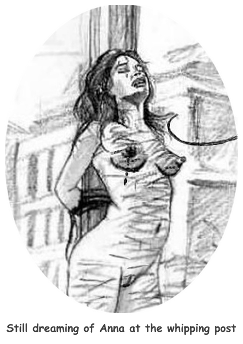 I can see her now standing calmly against the post, her exciting breasts still sticking out pertly, but I can picture her in my mind she is valiantly fighting the savage lashes and the pain… I imagine her whipped breasts trembling but boldly jumping back... I see Anna twitching and moaning but not screaming ... despite infuriating the executioner and the audience.