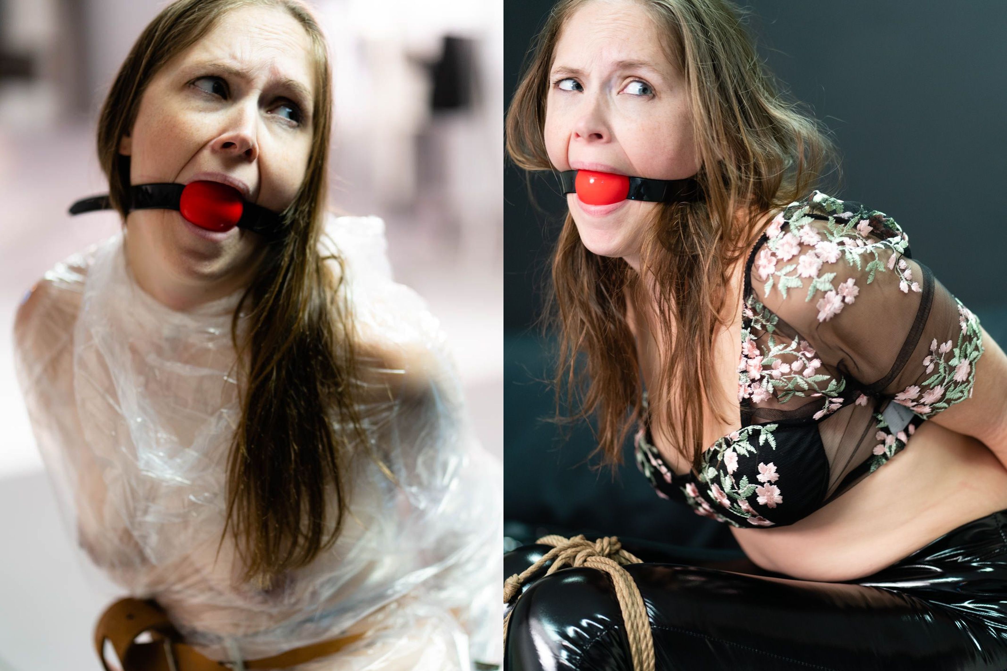 1) Goldie Blair, tied and chain-leashed, and a horny, mad Clown, for DamselX (Nicheclips),