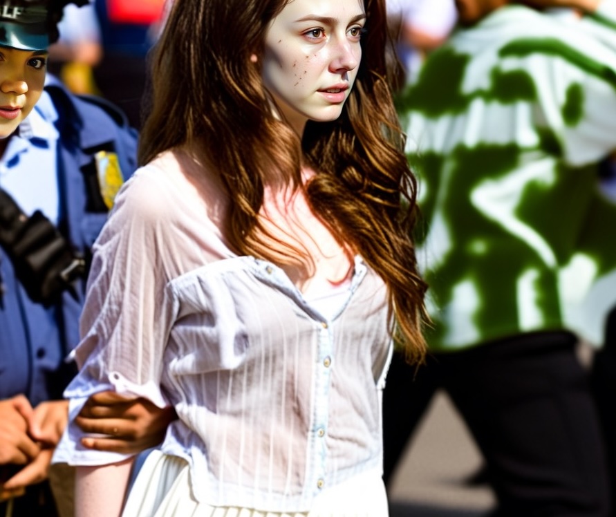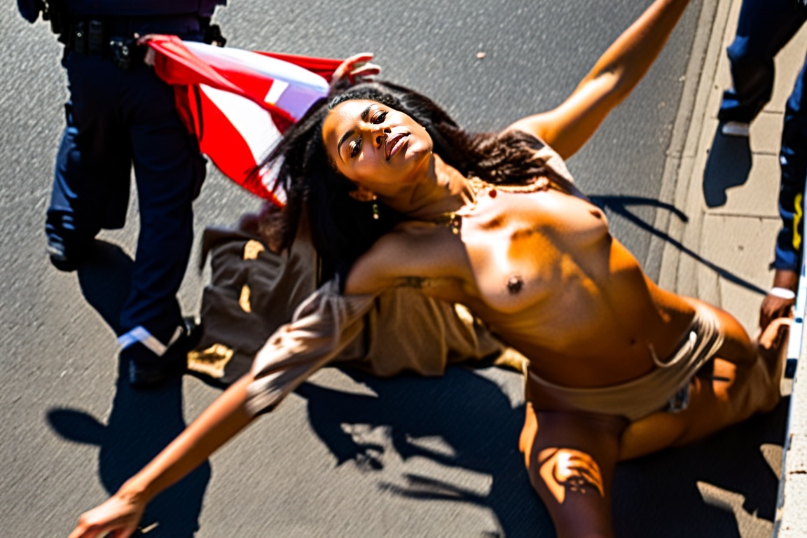 The moment of Danielita's arrest at the first demonstration that took place in San Rosario after many years. The female police officers showed more zeal even than the male ones in groping the private parts of the arrested girls.