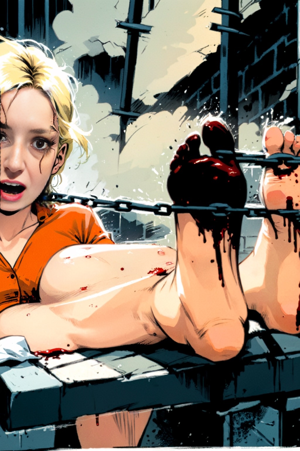 Watching this gif I always imagine my wife, walked down the prison corridor. Even if here is a blonde, and my wife is short haired brunette. With your prison, I always have a horny idea about how foreign tourists getting in and out to this country. Even if we are foreign specialists, working in this country - border checks for loyalty are mandatory and traditional. When we are once per year getting out and returning back - to get a visa they are welcoming us in this prison. We are actually don't mind. They taking us to different places, and I didn't see my wife for hours. I'm a very busy anyway. This beautiful torturess strapping me to a chair, naked. A little electricity, a little whipping. She playing with me until I tell her everything about our vacation. How often we had sex, when and in details. She even demanding fantasies, description of girls I met on the beach and how I would fuck them. And how I like someone would fuck my wife. If she satisfied, she riding my cock. Then set me free, stamping my passport, and welcoming me in the country. Then, naked, I'm waiting outside for my wife. And she is walked her like this. Also naked, also after similar interrogation, always with whip marks and often with sperm on her face. Then we are fucking at home, and she always in details telling me what they did with her.