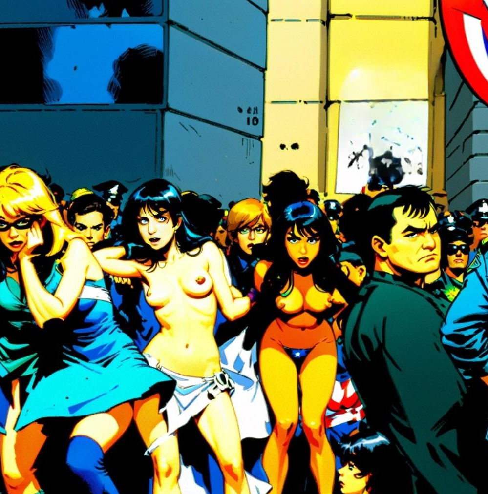 Assuming that your wife is rather petite, with small breasts, blue eyes, short brown hair, and a face resembling the girl you mentioned in the previous picture I have created three comic-style images.
