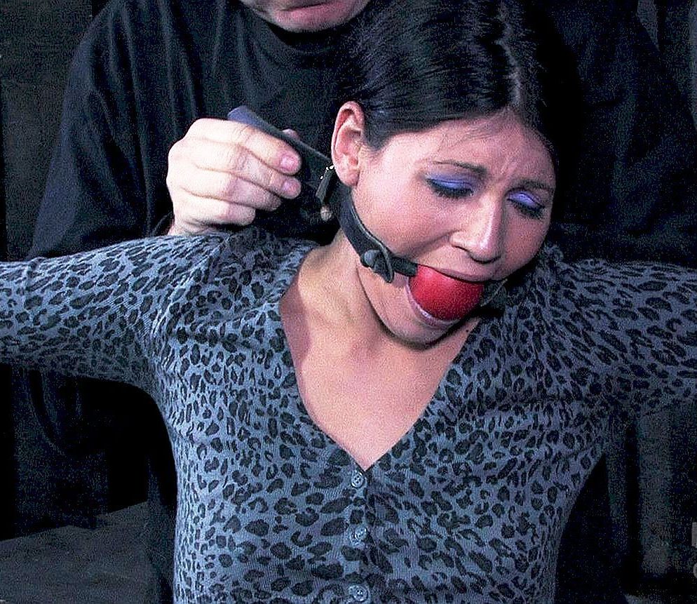 Kelly McKay, deliciously naked, tied aoh and gagged, courtesy of ZFX' Jackbooth Job.