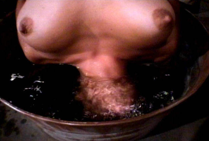 Throughout the movie the lovely Lisa Kinkaid is subjected to a terrible ordeal using a number of painful methods. In my favourite scene the unfortunate Lisa is suspended upside down and repeatedly lowered into a water bath by her 2 tormentors.